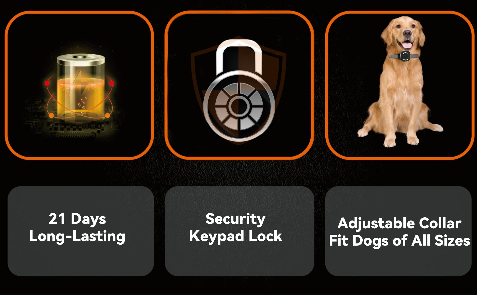 • Easy to use & Up to 21 days of battery life:The clear color screen make it easy to operate the collar during day or night.Besides,it also has a memory function,so there is no need to reset it every time you turn it on.With a USB charging cable,the collar can last up to 21 days of standby time after being fully charged within 2 hours.