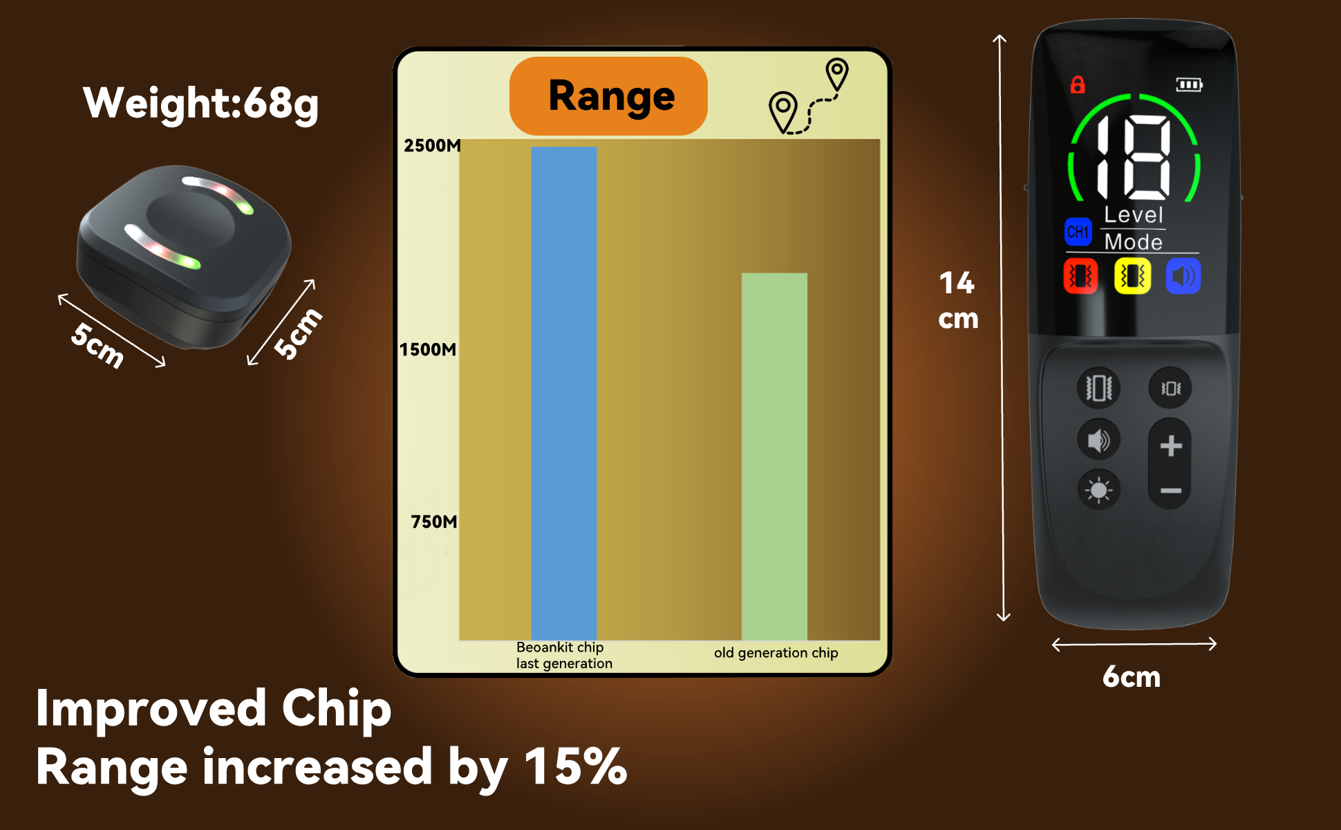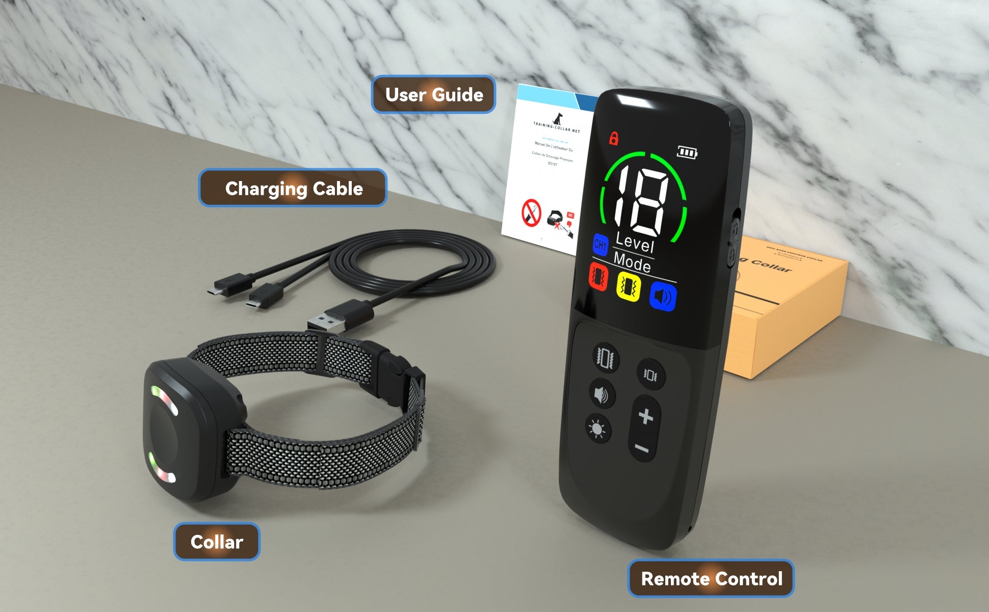 Easy to use & Up to 21 days of battery life:The clear color screen make it easy to operate the collar during day or night. Besides, it also has a memory function, so there is no need to reset it every time you turn it on.With a USB charging cable, the collar can last up to 21 days of standby time after being fully charged within 2 hours.